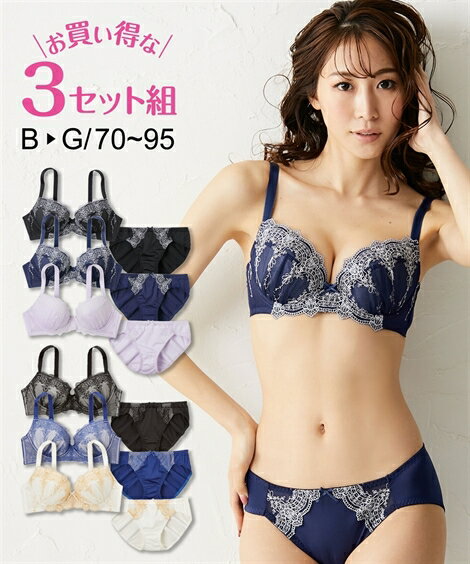 【送料無料】 ブラジャーショーツセット (E95/4L-F95/4L) 大きいサイズ 刺しゅう レース ブラジャー ショーツ 3セット組 ニッセン nissen ブラセット ブラショーツ